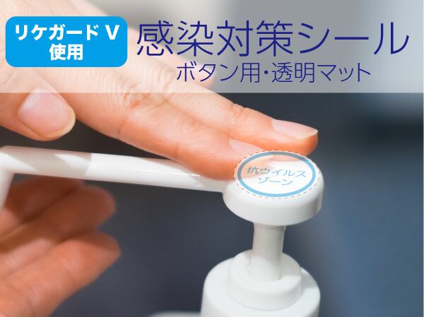 抗菌・抗ウイルス機能の感染対策シート、リケガードVを表面に採用した、感染対策シール『抗ウイルスゾーン』ボタン用。